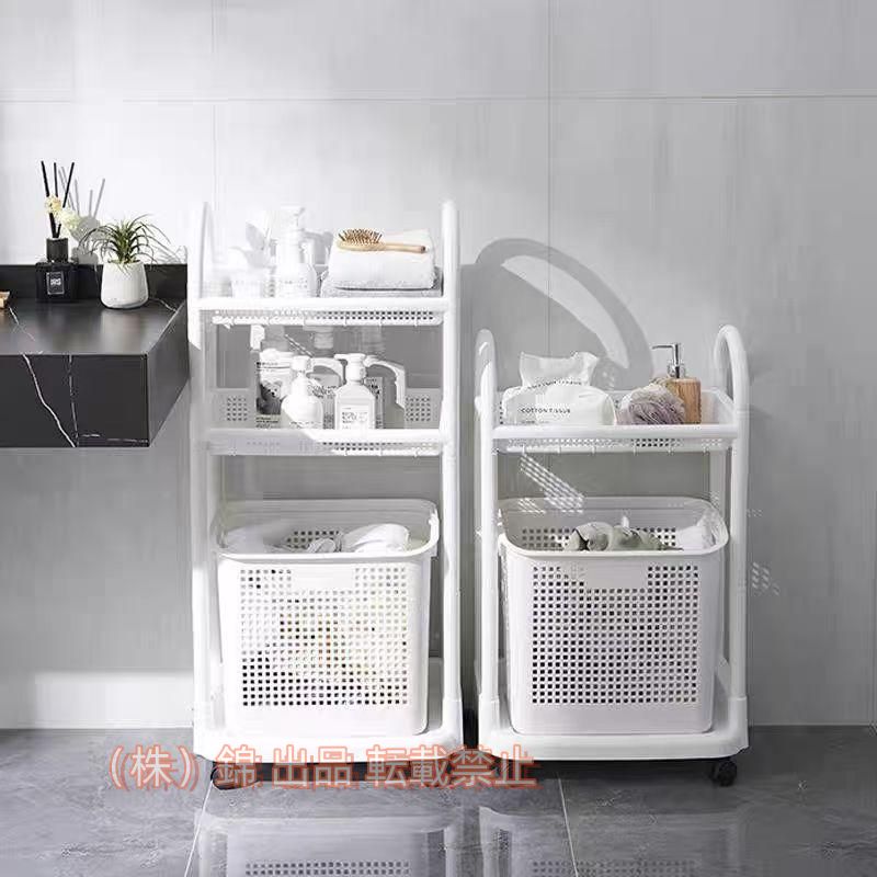 ■ランドリーワゴン スリム ランドリー ラック バスケット 2段 収納 キャスター付き ハンガーラック 洗濯かご 新生活 laundry-wagon