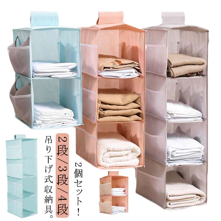 ■2個セット 吊り下げ収納 クローゼット 衣類収納 折りたたみ 下着 小物 タオル 吊り下げ式 収納 ラック 2段 3段 4段 ランドリー ポケット