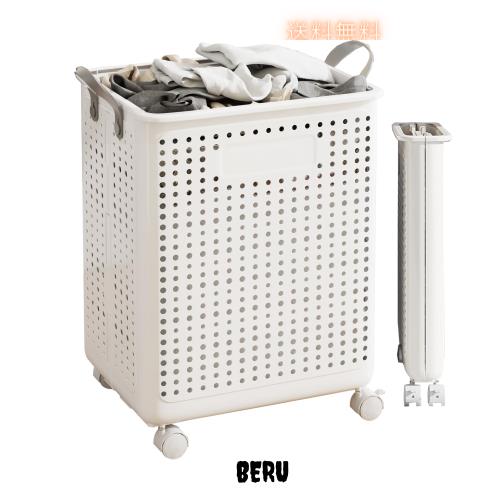 ◆商品名:Long Yi 洗濯かご ランドリー バスケット 折り畳み 洗濯カゴ スリム 折りたたみ キャスター付き 大容量 取っ手付き 幅37.7×奥行31×高さ4