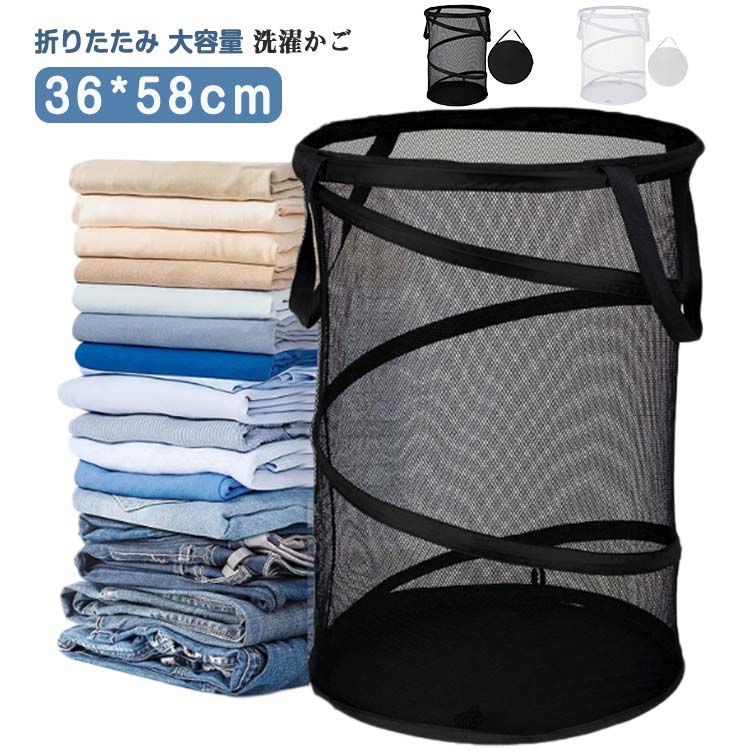 ■洗濯物入れ ランドリー 洗濯かご 折り畳み式 インテリア コンパクト メッシュ 収納ボックス 軽量 便利 軽い 簡単 ランドリー用品 通気性