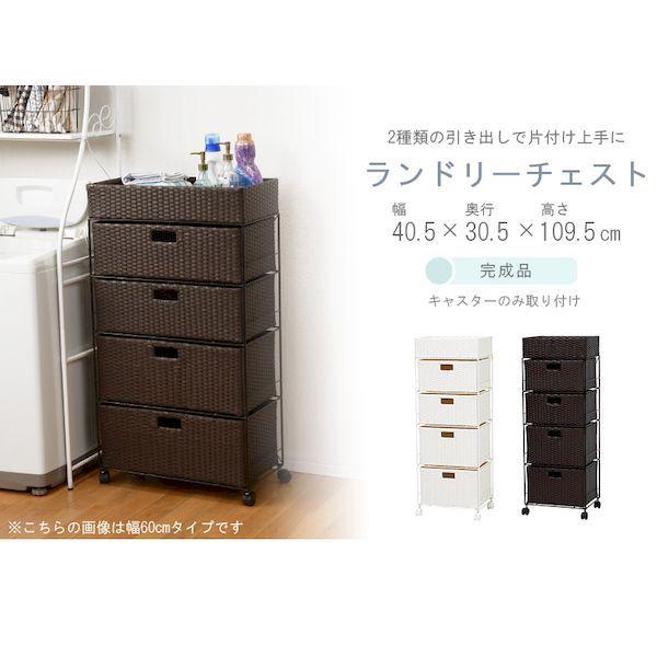 【商品説明】●通気性の良い、引出しで水回りの収納もバッチリ!●商品サイズ(外寸)(約)幅40×奥行30.5×高さ109.5cm●内寸及び補足説明:●キャスター付●カゴ部内寸:約幅37.5×奥行27.5×高さ11cm●引出し内寸(浅):約幅35.5×奥行27.5×高さ18cm●引出し内寸(深):約幅35.5×奥行27.5×高さ23cm●成分材質:主材:スチール 張地:ポリエチレン