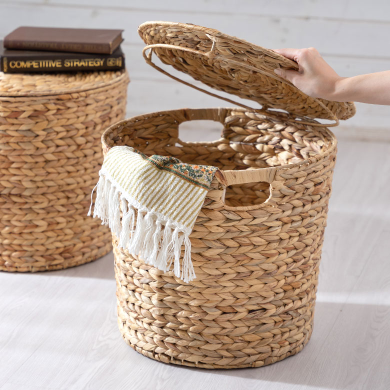 ■バスケット ふた 付き テーブル 蓋 大きめ ウォーターヒヤシンス カゴ 持ち手 ハンドル ランドリー ゴミ箱 ごみ箱 おしゃれ 北欧 西海岸