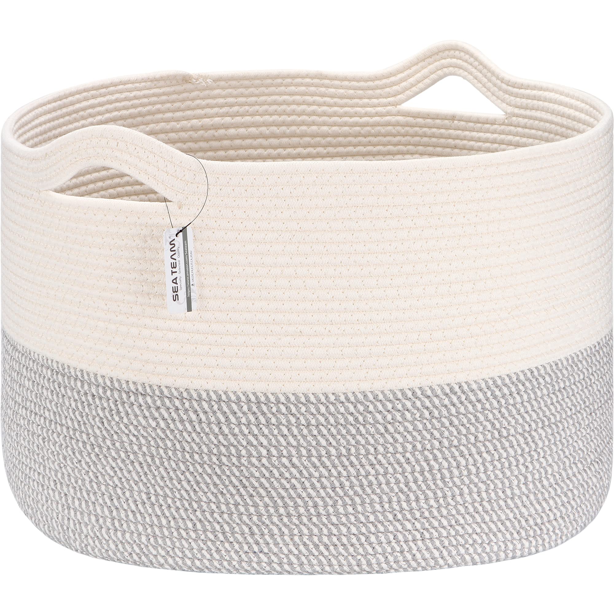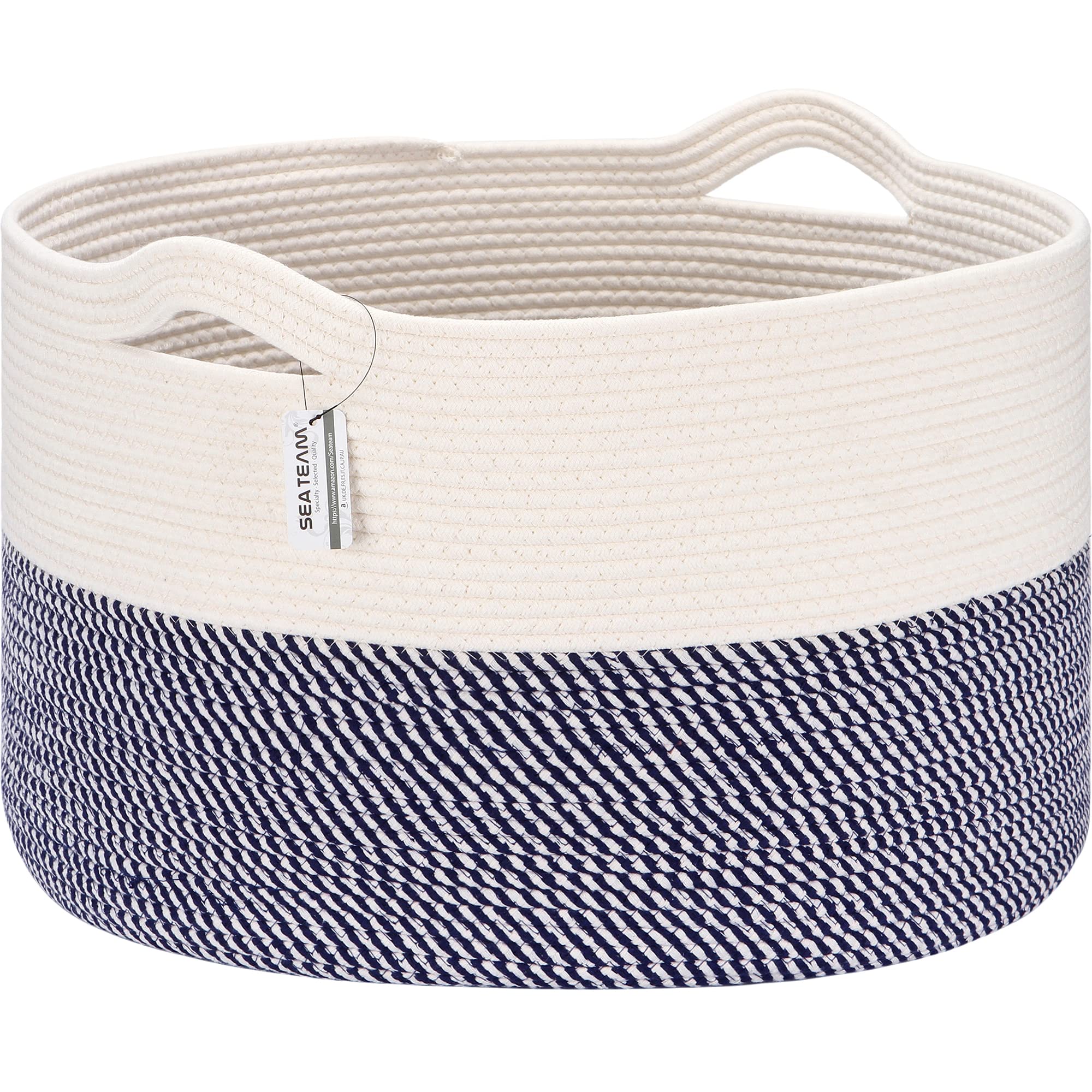 ■Sea Team ランドリー収納 コットンロープバスケット 収納かごバ スケット 持ち手付き ランドリー ランドリーバスケット 収納ボックス 洗