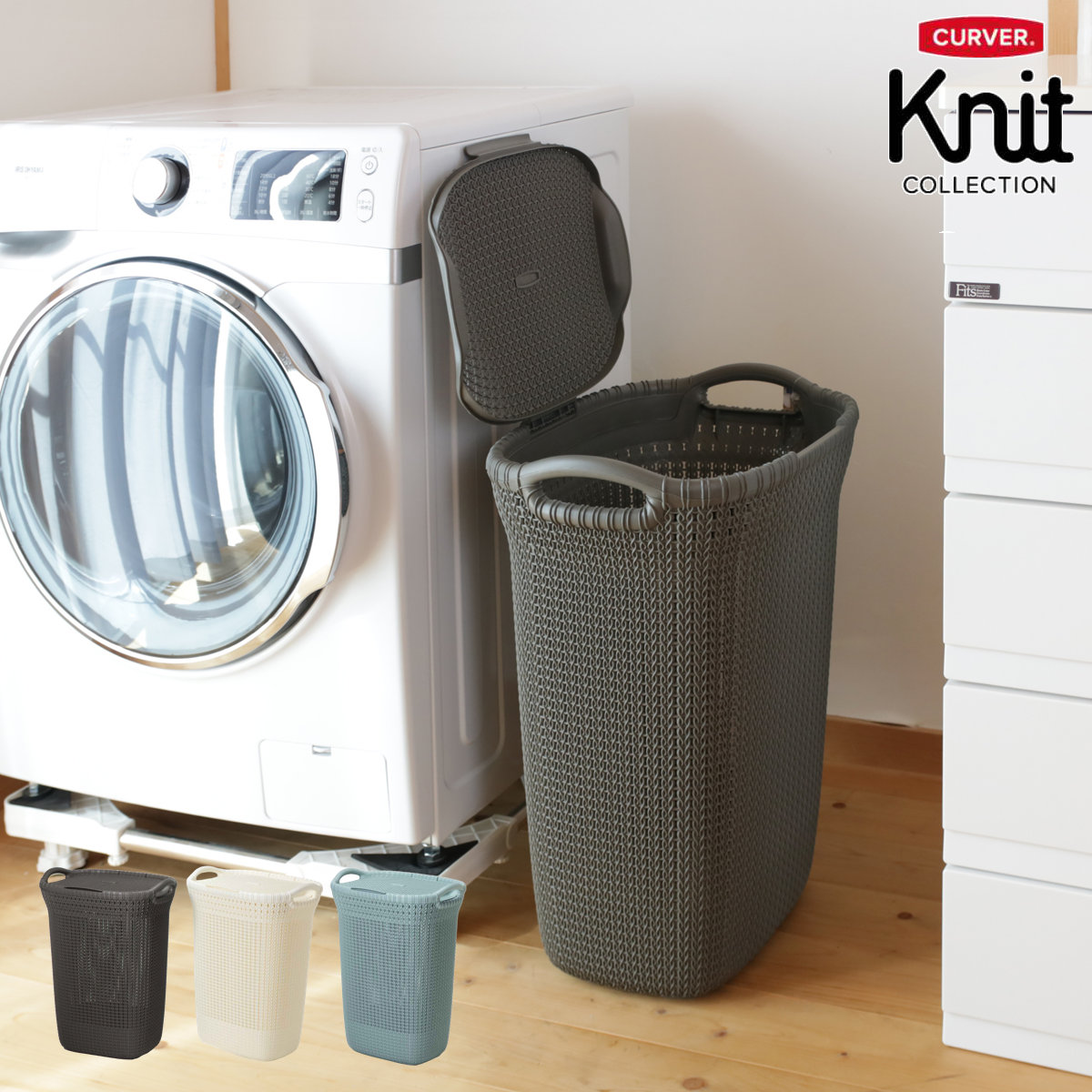 ■ランドリーバスケット 蓋付き CURVER ニットランドリーバスケット 57L ( カーバー バスケット ランドリー 持ち手付 洗濯 脱衣かご 洗濯