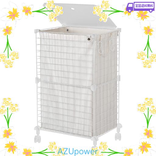 ■UZENN 72L メタル ランドリーバスケット 蓋付き 洗濯カゴ 大容量 キャスター付き ランドリー ボックス ワイヤーネット 洗濯物入れ 角型