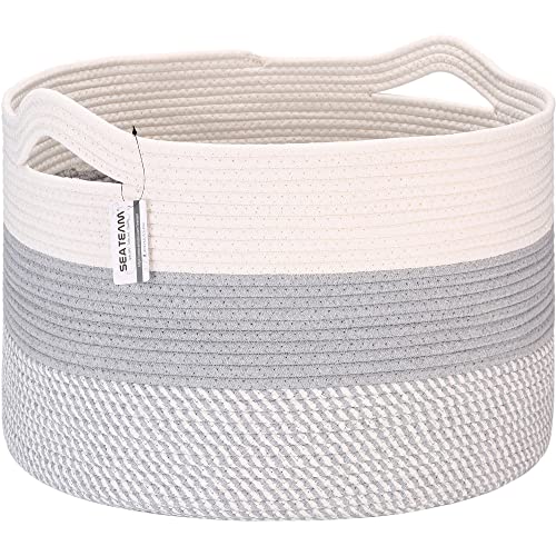 ■Sea Team ランドリー収納 コットンロープバスケット 収納かごバ スケット 持ち手付き ランドリー ランドリーバスケット 収納ボックス 洗