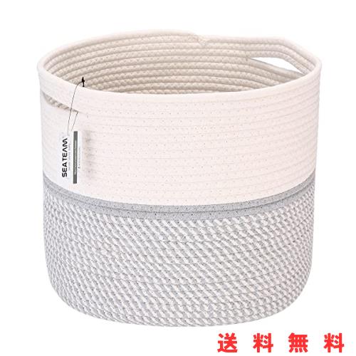 ■Sea Team コットンロープ 収納バスケット 衣類 収納 バスケット ランドリー バスケット 収納かご インテリア バスケッ 物入れ 洋服 鉢カ
