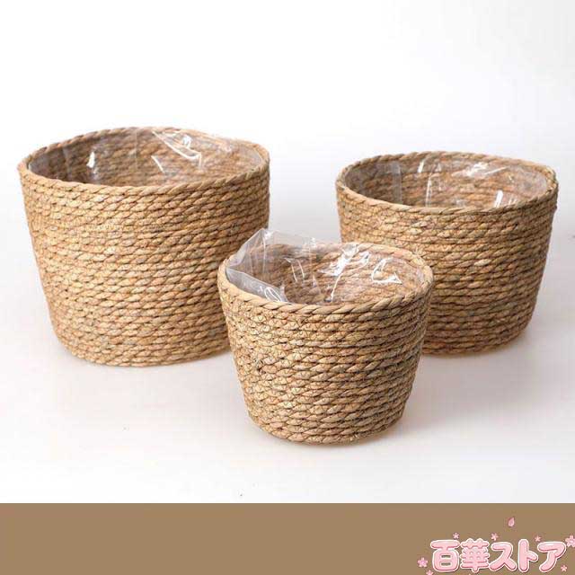 送料無料 バスケット プランター 鉢カバー 植木鉢 ボックス 三個セット 収納カゴ ゴミ箱 ダストボックス かご 衣類 ランドリー BOX 天然素材 タイ 雑貨 アジアン インテリア