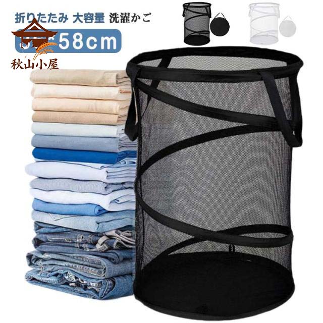 洗濯物入れ ランドリー 洗濯かご 折り畳み式 インテリア コンパクト メッシュ 収納ボックス 軽量 便利 軽い 簡単 ランドリー用品 通気性 カビ予防 カゴ 折畳 ゴミネット ボックス 省スペース カラス対策