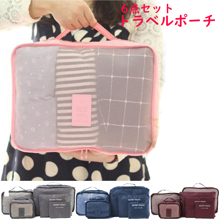 ■トラベルポーチ おしゃれ レディース メンズ 収納ポーチ 6点セット 旅行 アレンジケース 衣類収納ケース 旅行バッグ ランドリー メッシュ