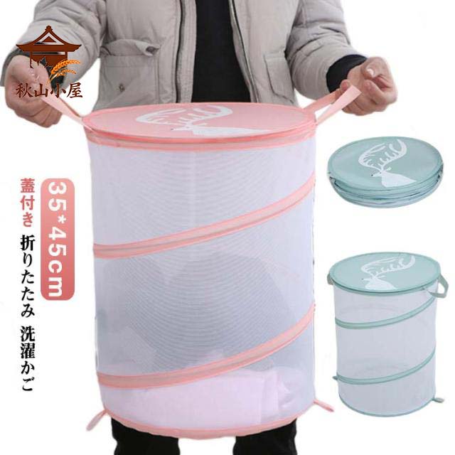 バスケット ランドリーバスケット 洗濯物入れ ランドリー 洗濯かご 可愛い 折りたたみ コンパクト メッシュ 収納ボックス ぬいぐるみ 収納 軽量 ランドリー用品 持ち手 通気性 カビ予防 ゴミネット ボックス カラス対策