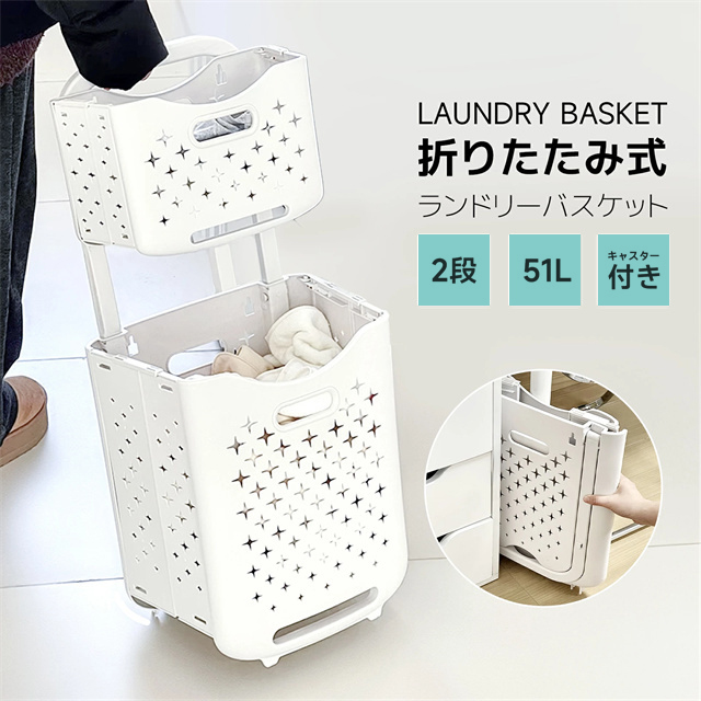 ■送料無料 冬新作 ランドリーバスケット DIY ラック 2段式 洗濯かご 脱衣所 洗濯物 収納 キャスター付き おしゃれ シンプル スリム 北欧