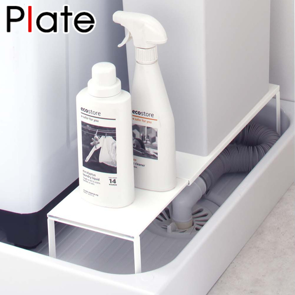 ■伸縮洗濯機排水口上ラック プレート Plate 山崎実業 ランドリーラック 隙間 収納 洗濯機横 ( 隙間収納 すきま収納 防水パン 伸縮ラック
