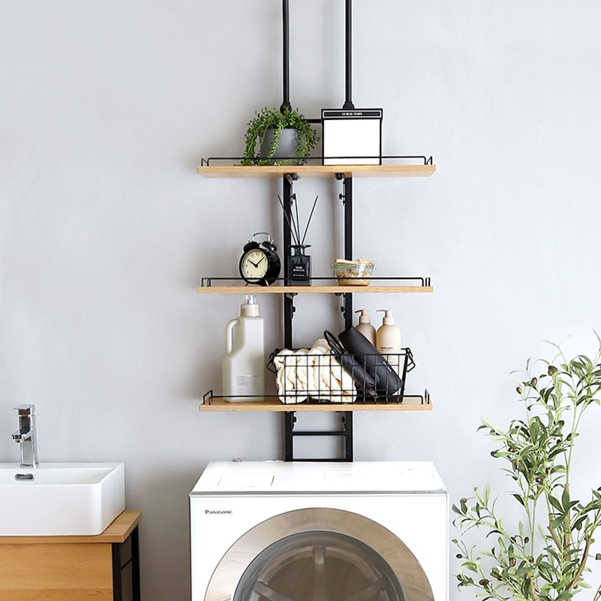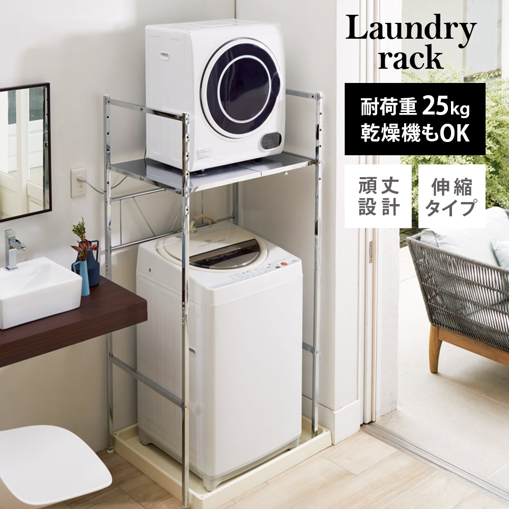 置き場に困る小型衣類乾燥機も安心して置ける、天板耐荷重約25kgの頑丈ラック。洗濯機のすぐ上に衣類乾燥機やミニ洗濯機などが配置できるスタンドなので、流れ作業で使えて家事の時短にも!※当商品は、洗濯機を動かさずにラックを設置可能です。【本商品は想定を大幅に上回る売れ行きにより、在庫なしとなってしまう場合がございます。順次生産・入荷をいたしますので、在庫なしの場合はぜひ、再入荷お知らせ登録をお願いいたします。】