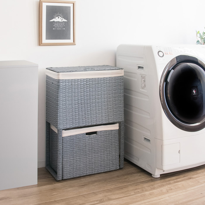 ■ランドリーボックス 脱衣所 洗面所 収納 分別 2段 RB-500-BL ブルー 幅50×奥行き25×高さ80cm MIYATAKE 宮武製作所