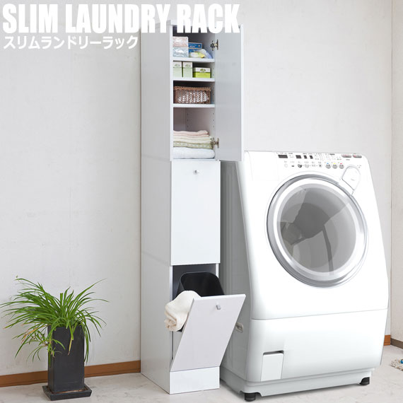 ■スキマ 収納 外せるカゴ付き ランドリーラック 引き出し付き ランドリーバスケット 幅32cm Sally