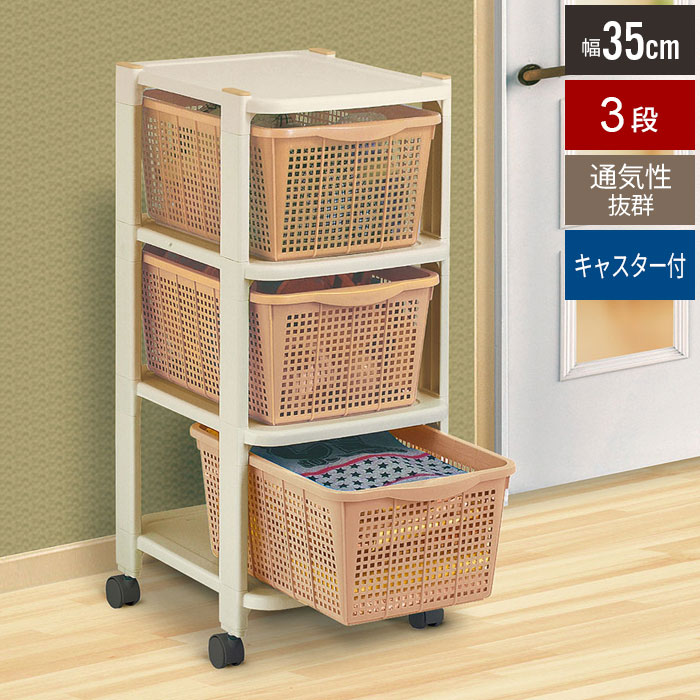 ■バスケット付収納ワゴン クローゼットラック 3段 幅31.5 収納 ワゴン バスケット かご ラック 棚 おもちゃ箱 おもちゃ 野菜 ストッカー