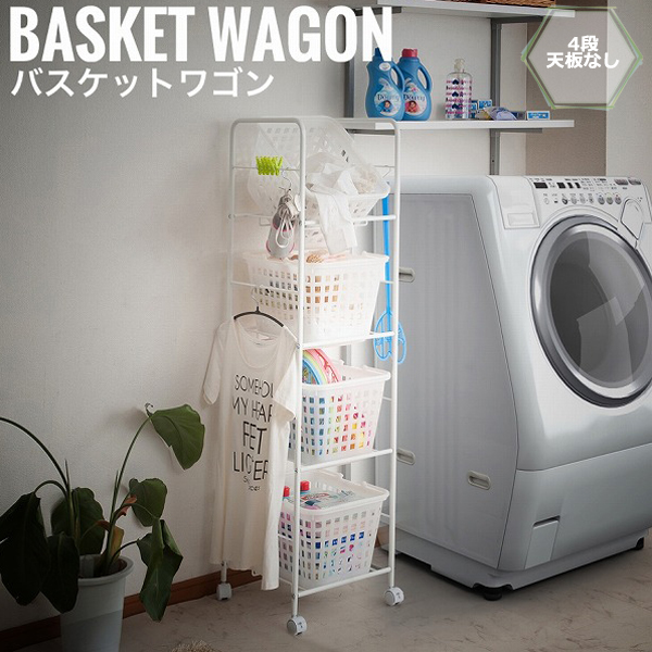 ■【受注生産】LaundryStorage ランドリーストレージ バスケットワゴン 4段天板なし 幅39cm (洗面所 収納,白,ラック,シンプル)