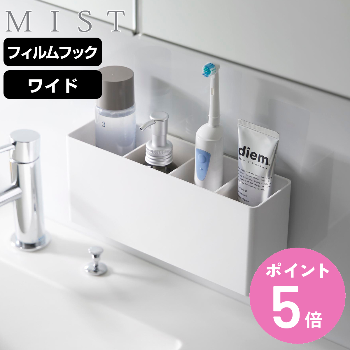 ■山崎実業 MIST フィルムフックストレージボックス ミスト ワイド ( ミストシリーズ 収納 フィルムフック 壁面収納 収納ケース ストレー