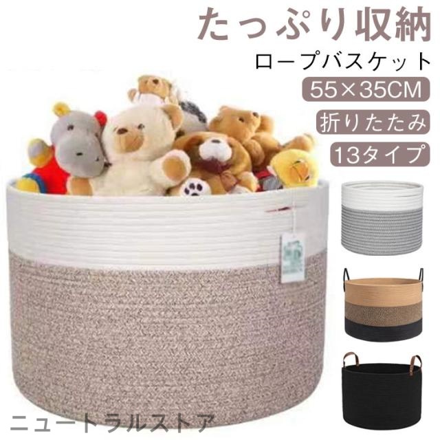 ロープバスケット 折畳み ランドリーバスケット 洗濯かご 大 70L ぬいぐるみ 玩具 収納 洗濯物入れ 収納カゴ 雑貨かご 縫い包み 鉢カバー おむつストッカー 洗濯籠 洗濯カゴ 織りバスケット 持ち手付き 大容量