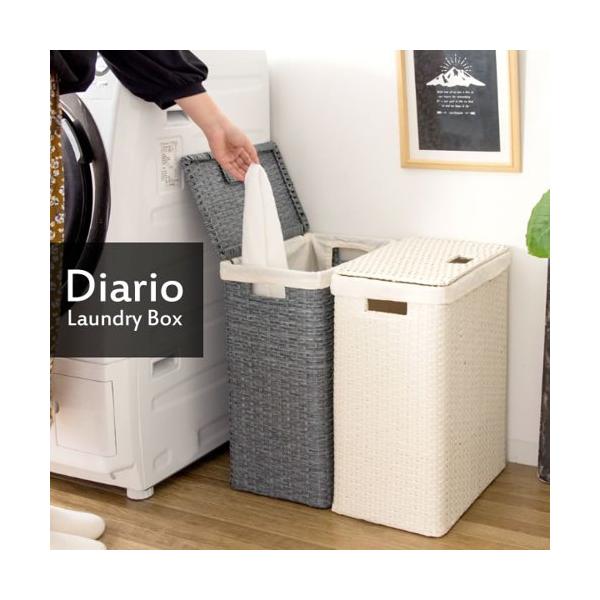 配達業者を指定いただくことはできません。北海道/沖縄/離島のお届けに別途中継料金が発生します。※別途送料が発生する場合は後ほどご連絡させていただきます。中の衣類を隠せるフタ付きの、省スペースで軽量なラタンランドリーボックス『Diario(ディアリオ)』。幅38×奥行き24×高さ50cmとスリムなデザインで脱衣所の家具や洗濯機とのすき間に収まります。通気性の良いラタンと洗える内袋付きで使い勝手も良く、毎日の洗濯が快適になること間違いなし。カラーは明るく清潔感のあるアイボリーと落ち着きのあるブルーの2カラーをご用意。お好みでお選びいただけます。タイミングによっては在庫切れの場合があります。