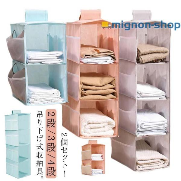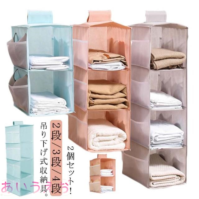 ■2個セット 吊り下げ収納 クローゼット 衣類収納 折りたたみ 下着 小物 タオル 吊り下げ式 収納 ラック 2段 3段 4段 ランドリー ポケット