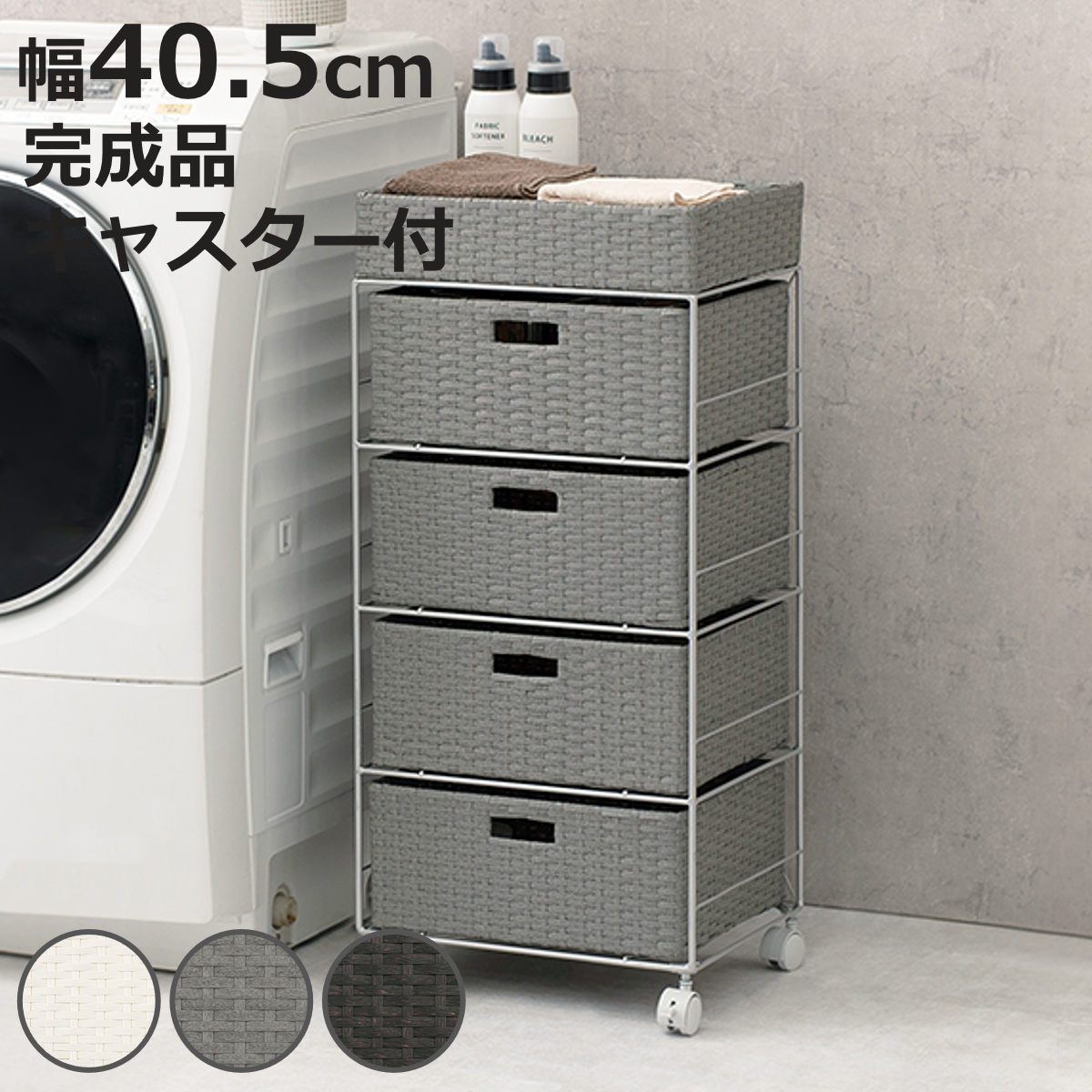 ■ランドリーチェスト 幅40.5cm 4段 引出し キャスター付 完成品 ( ラタン調 ランドリー チェスト ラック 防水 撥水 収納 かご ラタン風