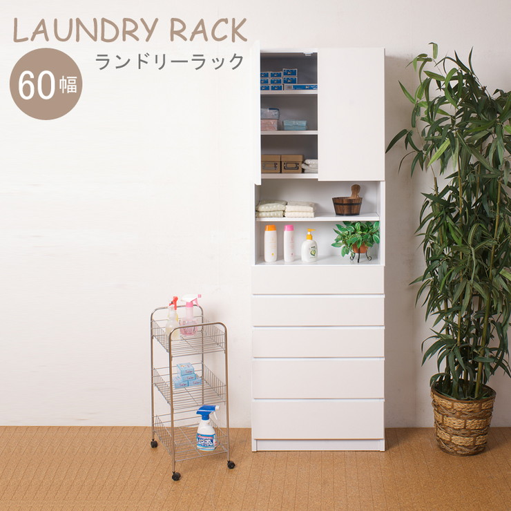 ■日本製 完成品 ランドリー チェスト 幅60 スリム コンパクト 大容量 ランドリーラック 60幅 白 ホワイト おしゃれ 北欧 引き出し 収納(代