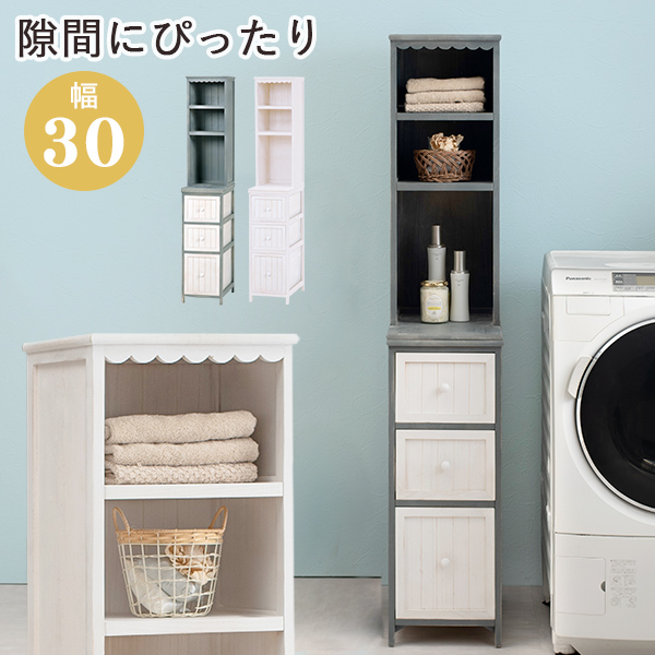 ■スリム チェスト 引出し 3段 幅30 棚付き 収納 木製 おしゃれ 北欧 収納家具 コンパクト かわいい リビング ランドリー シャビー ホワイ