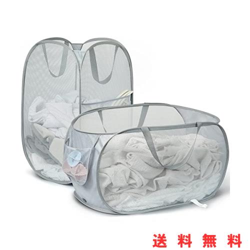 ■J.K.T ランドリー バスケット 洗濯カゴ 折りたたみ 大容量 55L メッシュ ランドリーバッグ 持ち運び 洗濯物入れ 超軽量 収納 旅行 二重収