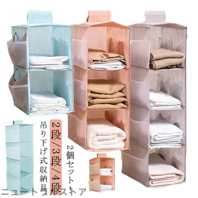折りたたみ ポケット付き 吊り下げ収納 衣類収納 吊り下げ式 2個セット 薄型 収納 下着 2段 タオル 帽子 3段 4段 ランドリー ラック 吊下 コンパクト タオル サイドポケット 洗える ハンカチ 小物 ランドセル入れ おもちゃ 洗面所 クローゼット