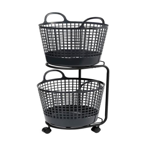 ■ライクイット (like-it) ランドリー 洗濯 収納 ラウンド型バスケット 2段 約幅41×40.5×90.5cm(キャスター含む) ブラック LW-01L+LBB-01