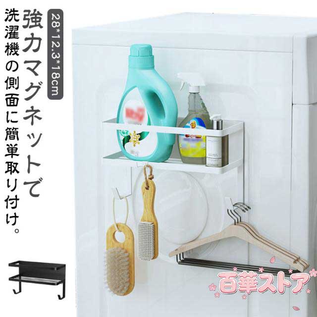 ランドリーラック 洗濯機横 マグネット 収納 ラック 棚 フック付き ランドリー 洗面所 洗濯機 冷蔵庫 隙間 横 洗剤 柔軟剤 キッチン 掃除用品 小物収納 磁石 バスケット 水切り ハンガー 収納 給水ホース 収納 北欧 おしゃれ