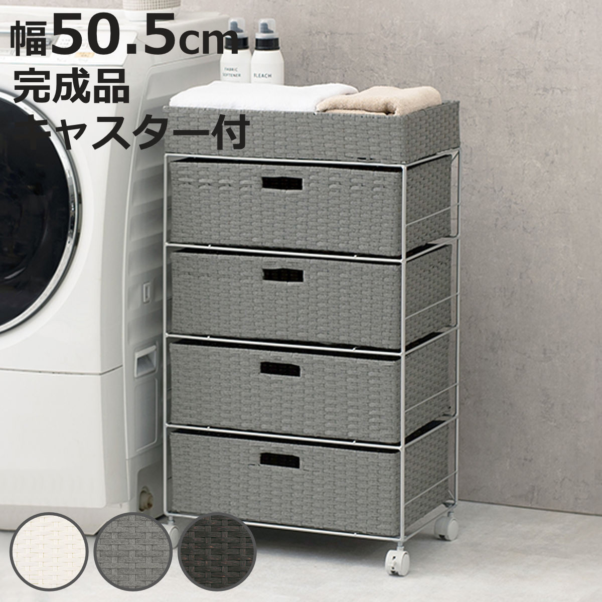 ■ランドリーチェスト 幅50.5cm 4段 引出し キャスター付 完成品 ( ラタン調 ランドリー チェスト ラック 防水 撥水 収納 かご ラタン風