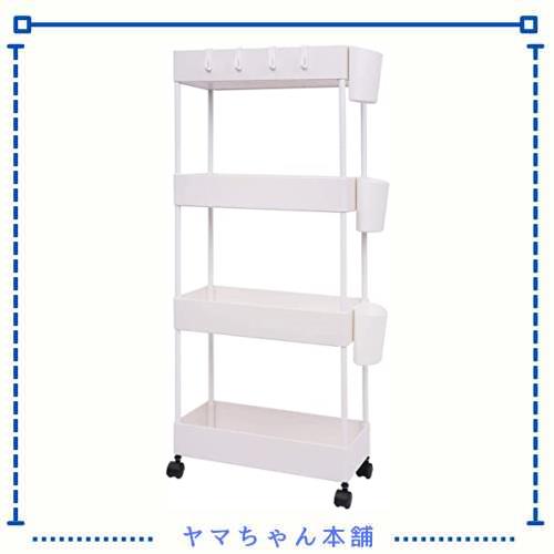 ■隙間収納 キッチン 4段 18cm 幅 キャスター付き キッチンワゴン スリム 収納 洗面所 すき間収納 ランドリー ラック 薄型 木製 すき間 キ
