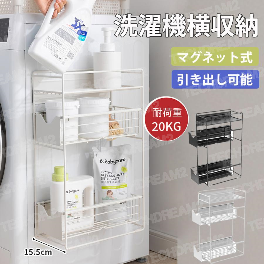 ■洗濯機横マグネット収納ラック 引き出し 洗濯機 ラック 3段式 収納 マグネット スリム ランドリー 洗濯機横 ランドリー収納 洗面所 すき