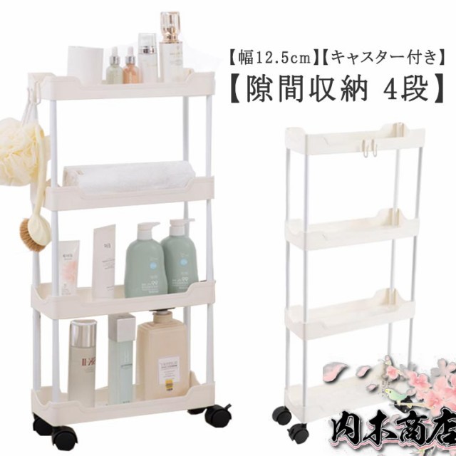 ■売上急増中 おしゃれ 北欧 ラック キッチン キッチン収納 キッチンワゴン 洗面所 玄関 軽量仕様 12.5cm ワゴン すき間 収納 ランドリー 4