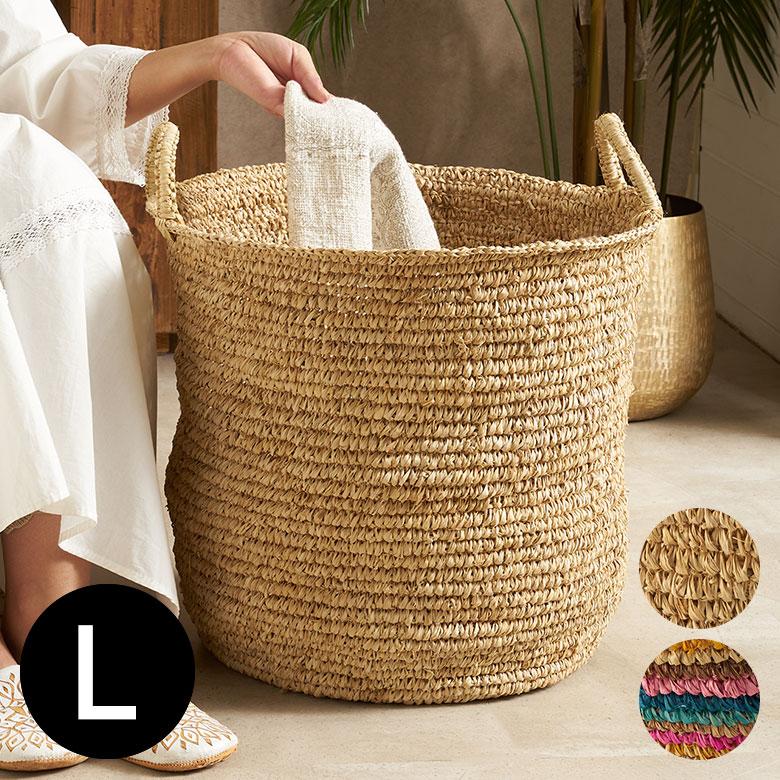 ■かご バスケット かごバスケット 持ち手付き 収納 ラフィア 収納かご カゴ ランドリー W40×D40×H40cm Lサイズ ディスプレイ インテリ