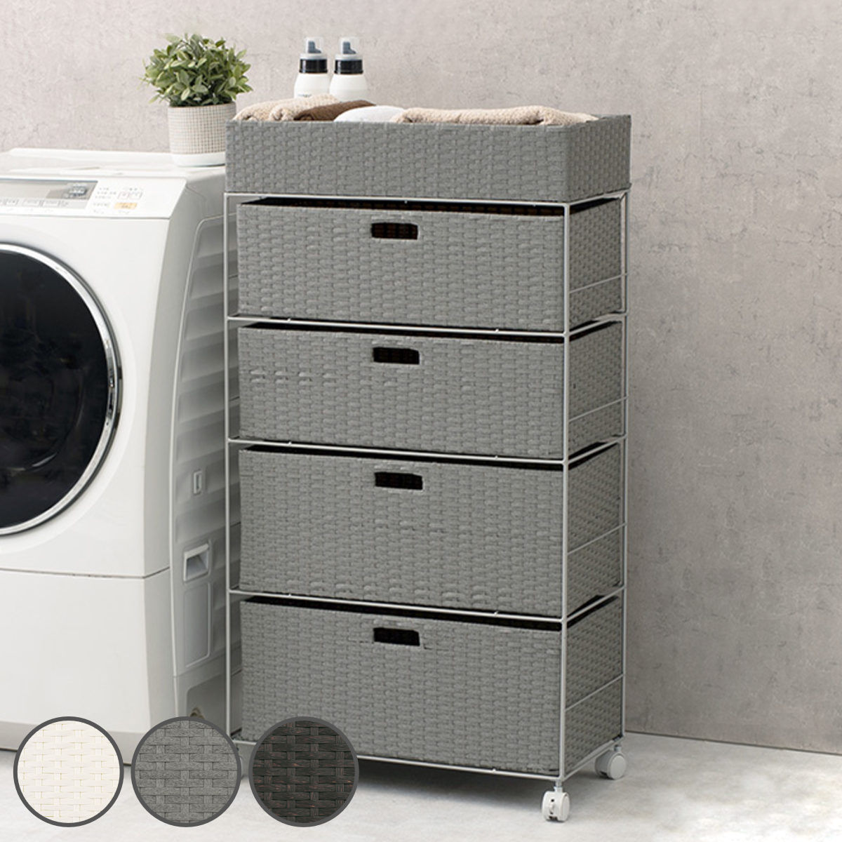 ■ランドリーチェスト 幅60.5cm 4段 引出し キャスター付 完成品 ( ラタン調 ランドリー チェスト ラック 防水 撥水 収納 かご ラタン風