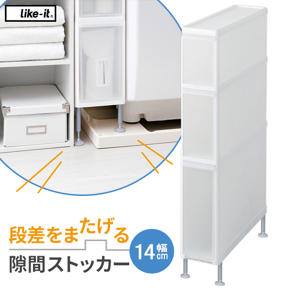 ■隙間収納 Like-it 段差をまたげる隙間ストッカー(3段) 幅14cm FTS-111A | ランドリー 隙間 収納 すきま 日本製 足の長さ調節 洗濯機