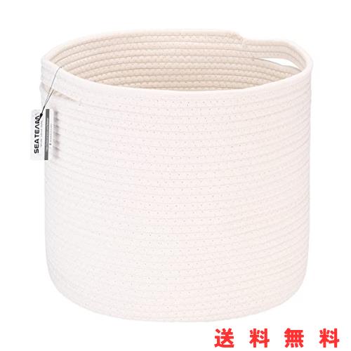 ■Sea Team コットンロープ 収納バスケット 衣類 収納 バスケット ランドリー バスケット 収納かご インテリア バスケッ 物入れ 洋服 鉢カ