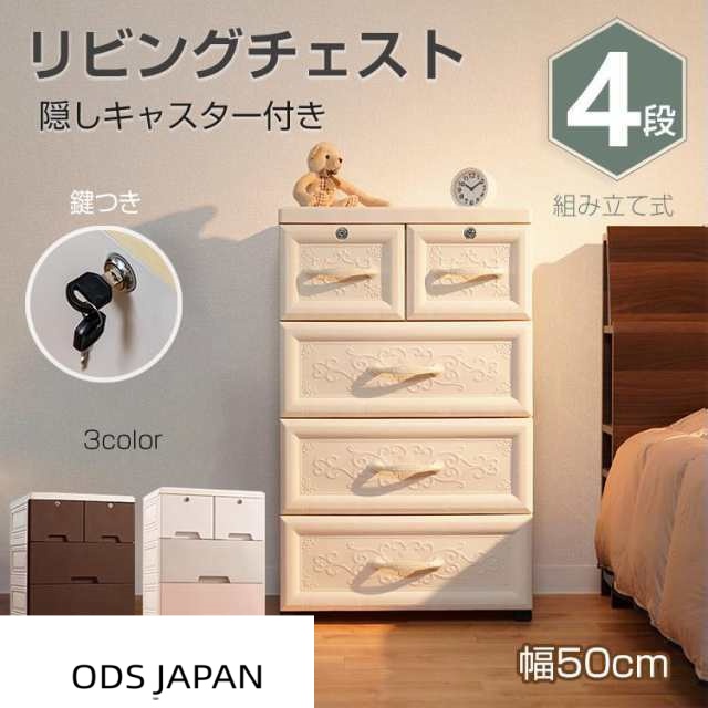 リビング チェスト おしゃれ 4段 収納 ボックス 衣類 衣装 ランドリー ケース タンス プラスチック 引き出し 鍵つき 整理 スリム 家具 新生活