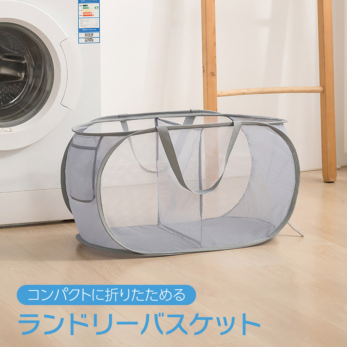 ■【パーテーション無し】折りたためる 洗濯かご 洗濯カゴ ランドリーバスケット メッシュ 自立 大容量 収納 おしゃれ オシャレ ランドリー