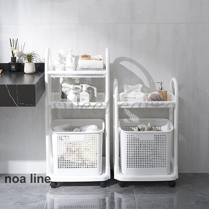 ■wanbao ランドリーラック3段 ランドリー ボックス バスケットワゴン キャスター付き 洗濯カゴ 脱衣かご 取り外し可能 組立品 収納 収納グ