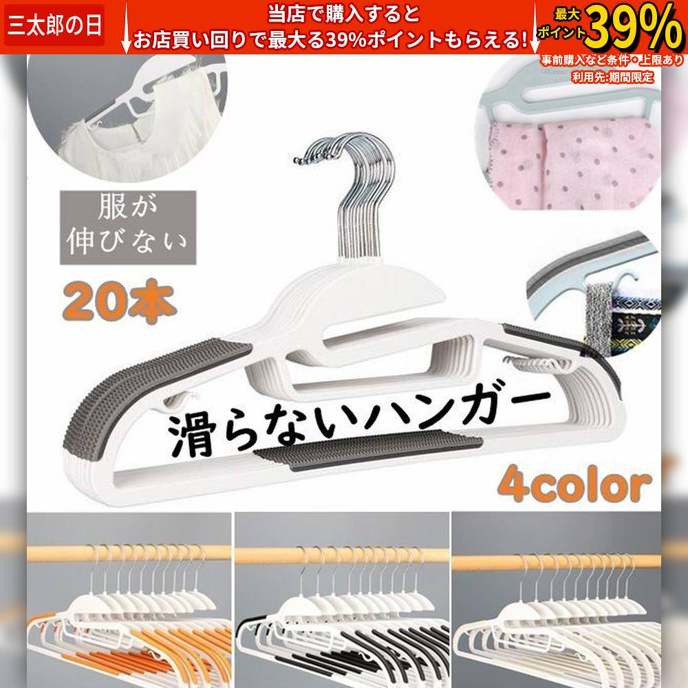 ■クーポン対象 年末セール 滑らないハンガー 収納 襟が伸びない 20本 セット おしゃれ ランドリー 選べる4色 set まとめ買い 送料無料 ク