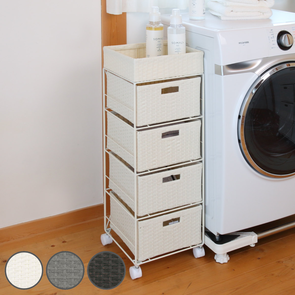 ■ランドリーチェスト 幅30.5cm 4段 引出し キャスター付 完成品 ( ラタン調 ランドリー チェスト ラック 防水 撥水 収納 かご ラタン風
