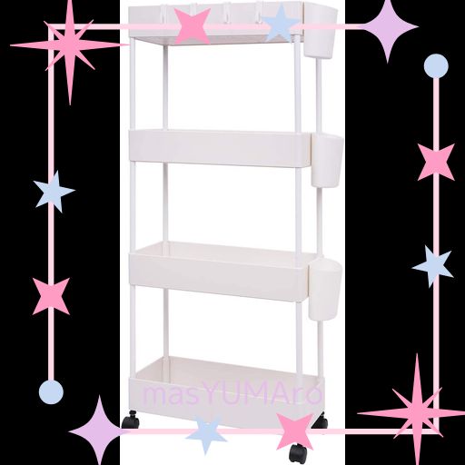 ■隙間収納 キッチン 4段 18CM 幅 キャスター付き キッチンワゴン スリム 収納 洗面所 すき間収納 ランドリー ラック 薄型 木製 すき間 キ