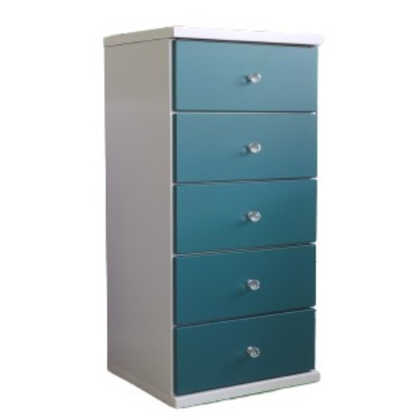 ■チェスト タンス 幅43.5cm 5段 ターコイズ スライドレール付き コンパクト 日本製 ベッドルーム 寝室 リビング 完成品