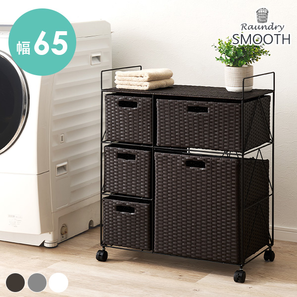 ■ランドリーラック ワイド 65cm 大容量 キャスター 軽量 衣類収納 収納 洗面所 脱衣所 ラック ラタン調 棚 収納棚 チェスト キャスター 通