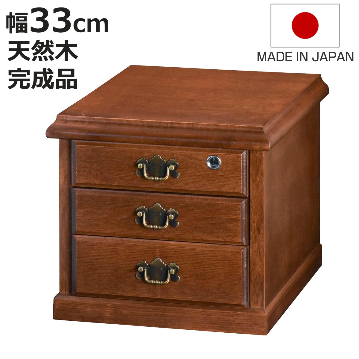 ■鍵付きチェスト 3段 A4収納 クラシカルデザイン 幅33cm ( チェスト 鍵付 A4 収納 天然木 日本製 完成品 木製 家具 引き出し A4対応 三段